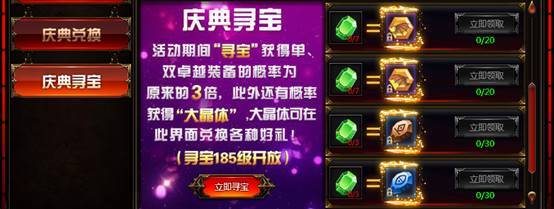活动内容:玩家在寻宝中有概率可获得大晶体,使用大晶体可兑换游戏中稀有道具,详情请根据游戏中活动兑换页面为准。