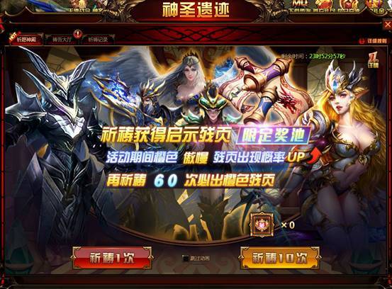 1. 活动内容:祈愿神殿是神圣遗迹限时开启的一种特殊奖池,祈愿神殿中特定橙色残页获得的概率会极大的提升