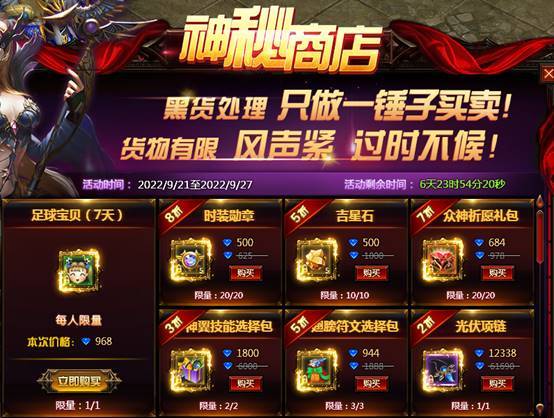活动内容:神秘商品限时折扣,货物稀有,难得一见,快来选购吧。